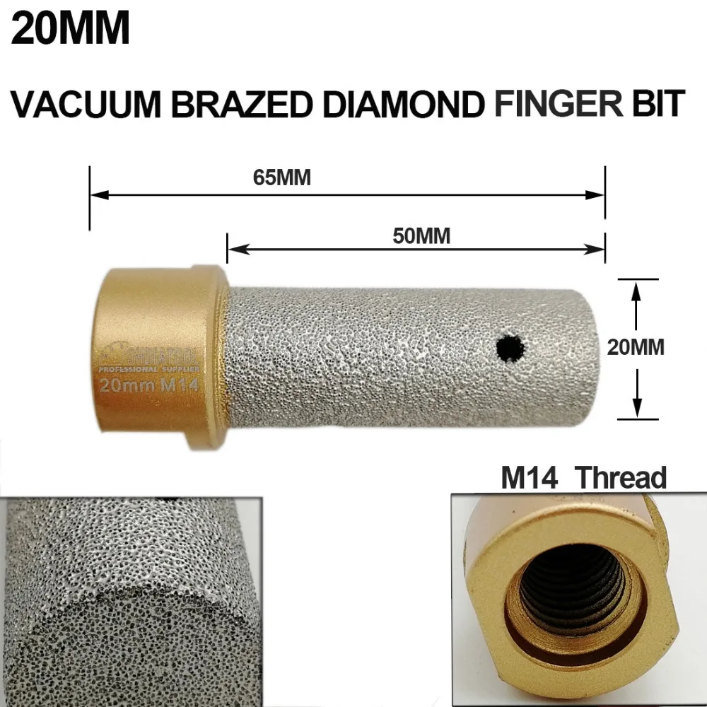 SHDIATOOL 1 шт. вакуумные пайки Алмазные пальцевые биты 58-11 или M14 резьба увеличить скошенное отверстие фрезерные Биты диаметр 102025 мм
