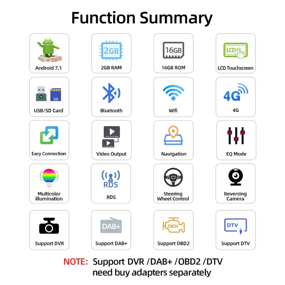 Special FeaturesBluetooth, GPS,WIFI,Radio,Mirror-Link,Camera