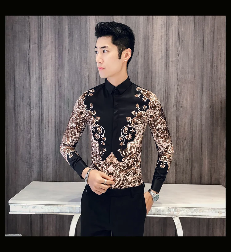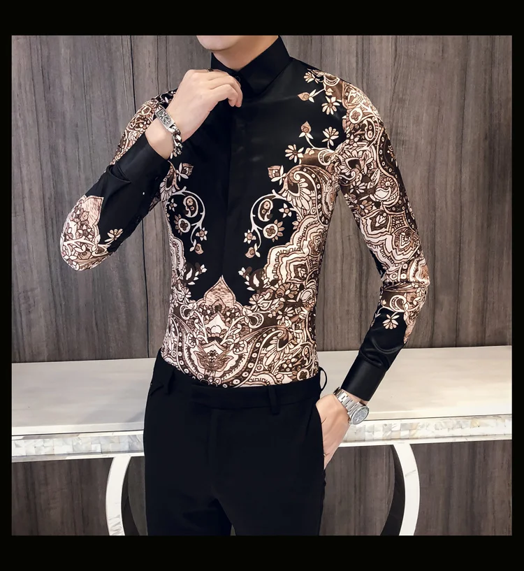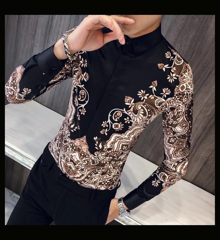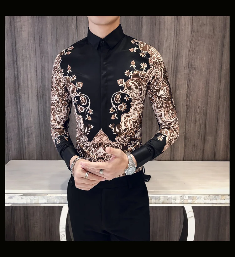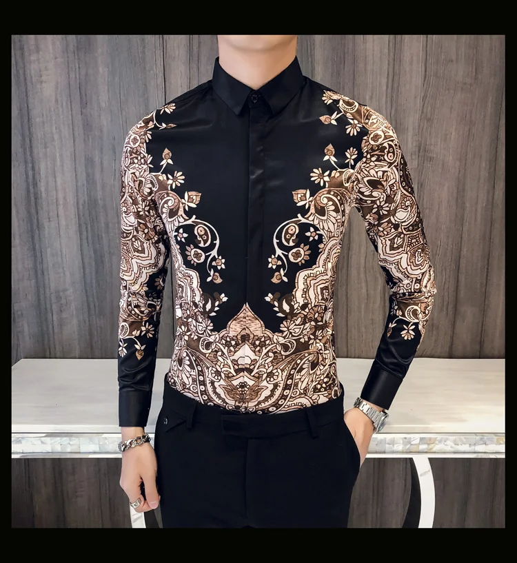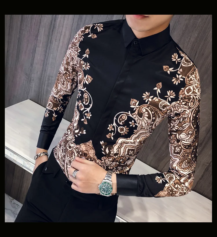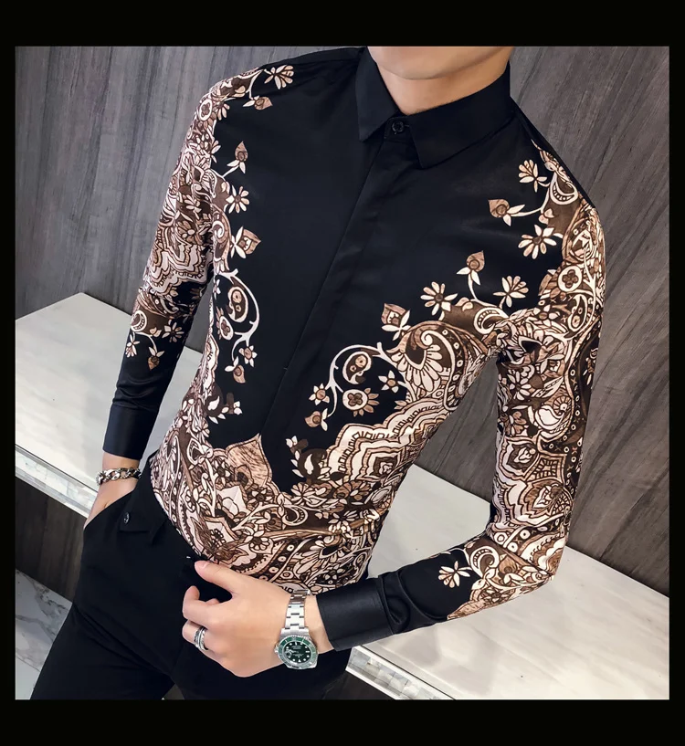 Рубашка мужская, с длинным рукавом, принтом Пейсли