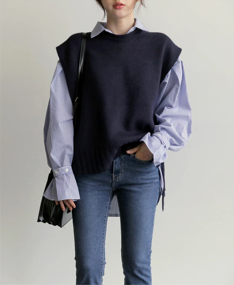 НОВЫЙ свободный свитер без рукавов весна осень женский жилет свитера вязаный жилет джокер вязаный жилет шерсть оверсайз пуловер для девочек