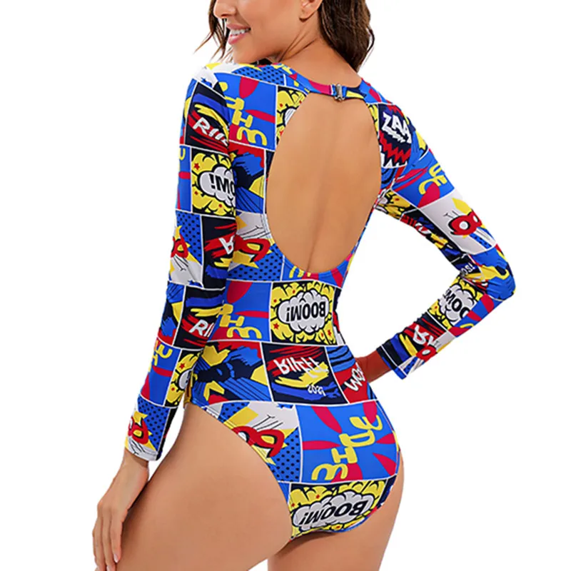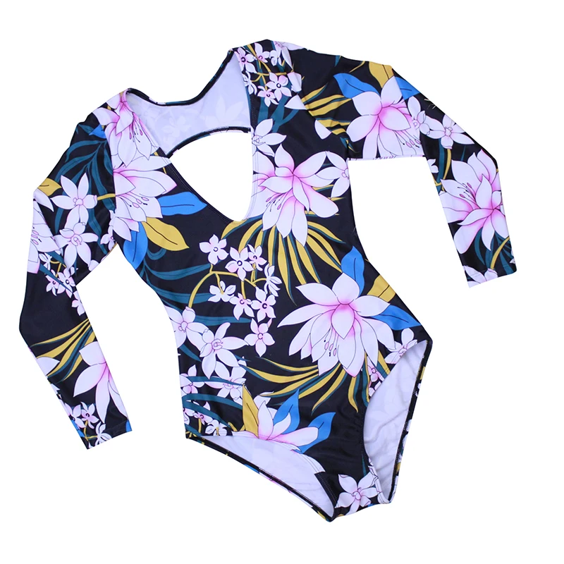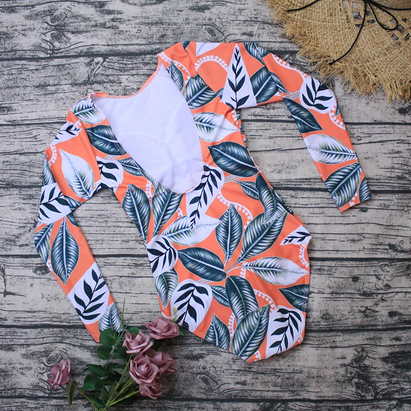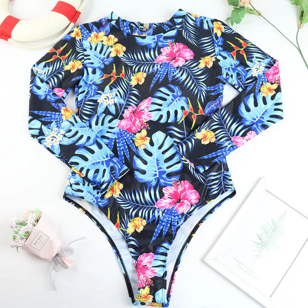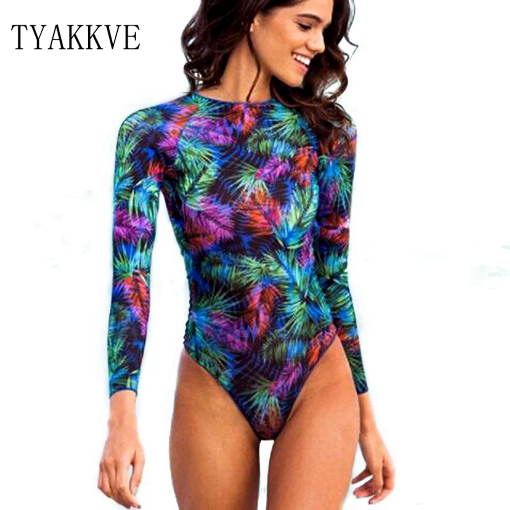 Слитный купальник TYAKKVE с длинным рукавом для женщин, одежда для серфинга с принтом Rashguard, боди с высоким воротом, купальные костюмы, монокини с открытой спиной X