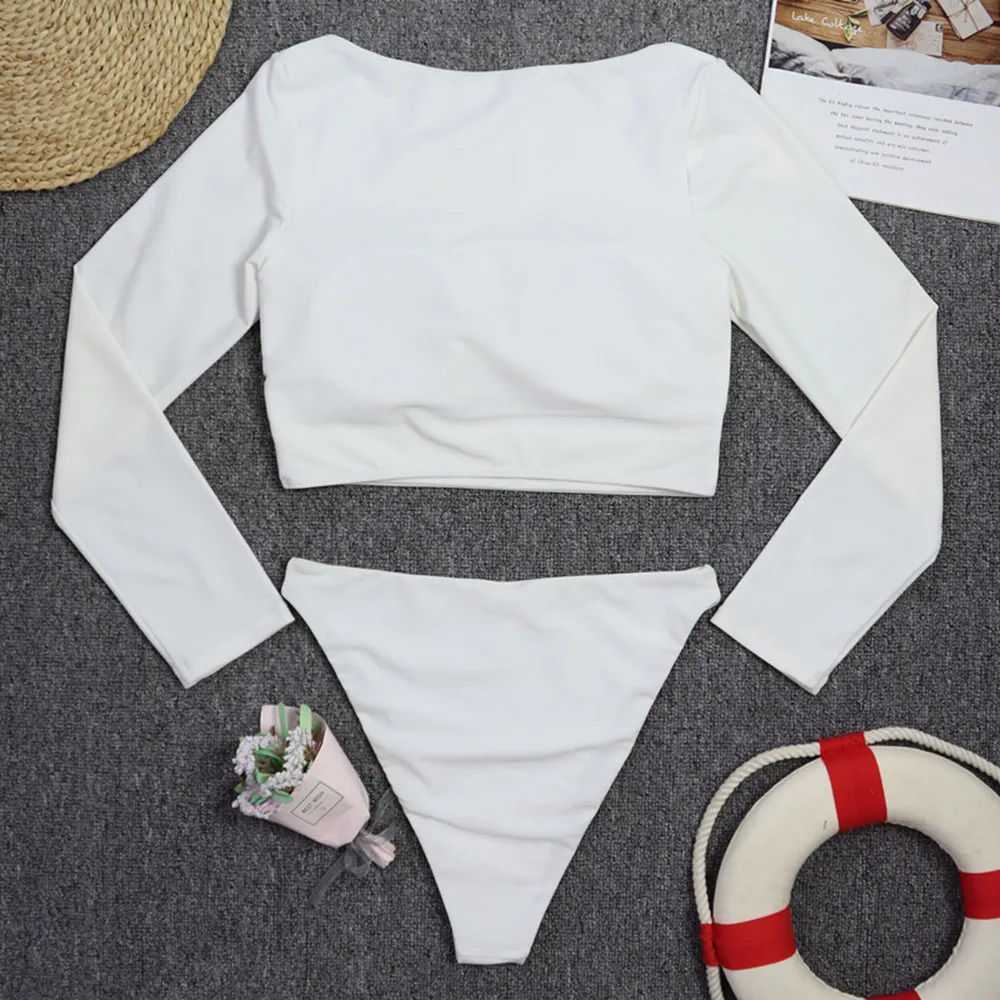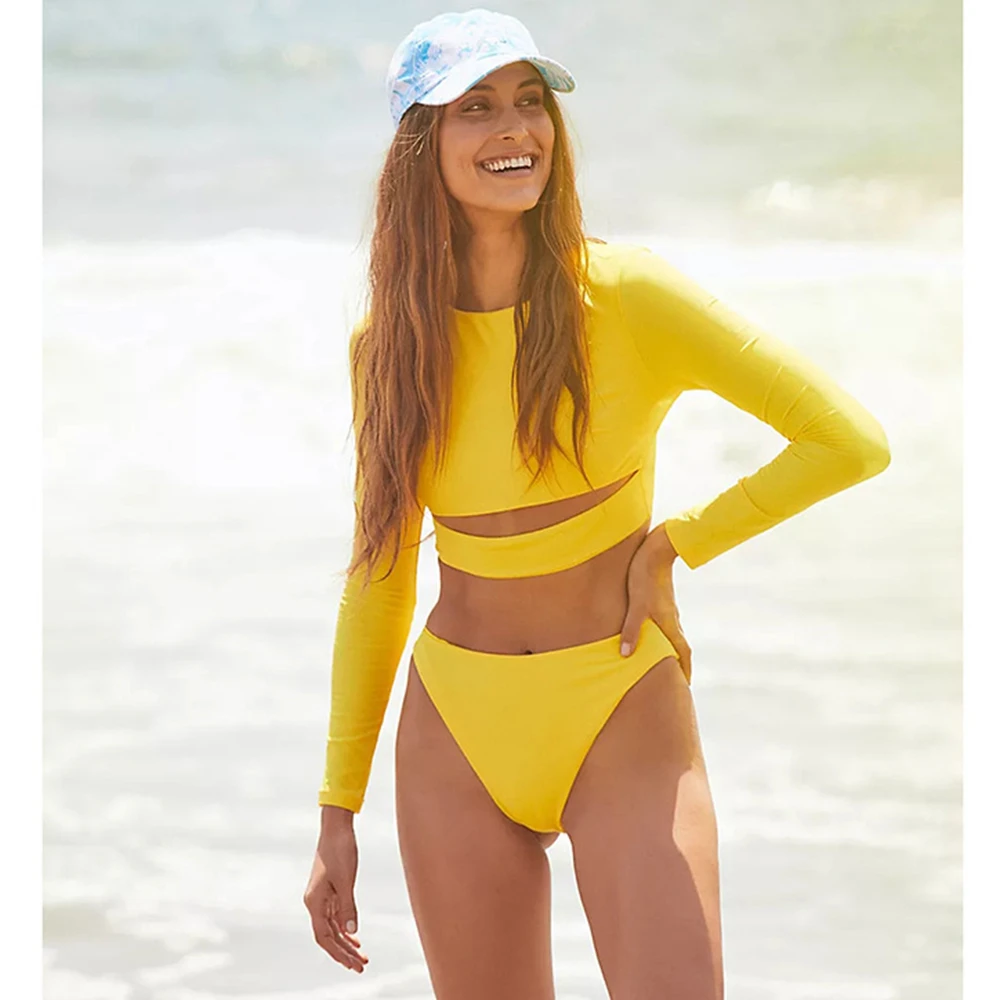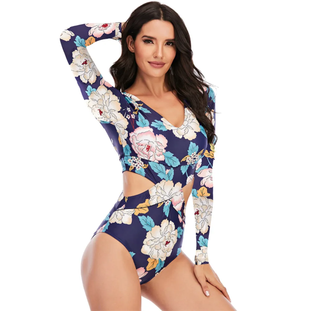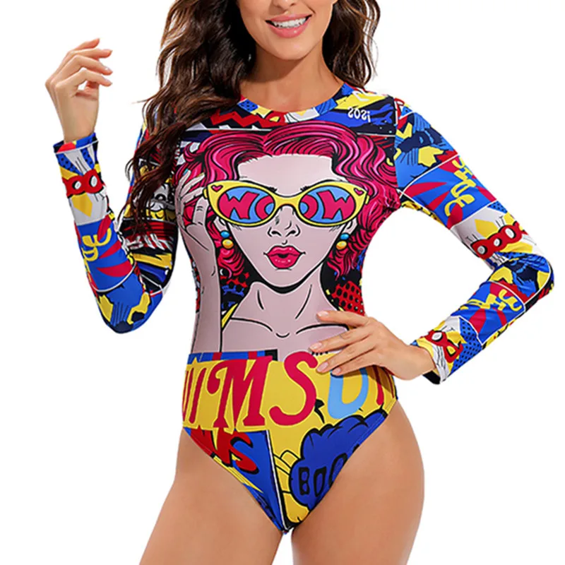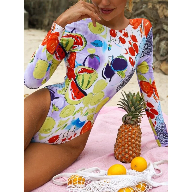 Слитный купальник TYAKKVE с длинным рукавом для женщин, одежда для серфинга с принтом Rashguard, боди с высоким воротом, купальные костюмы, монокини с открытой спиной X