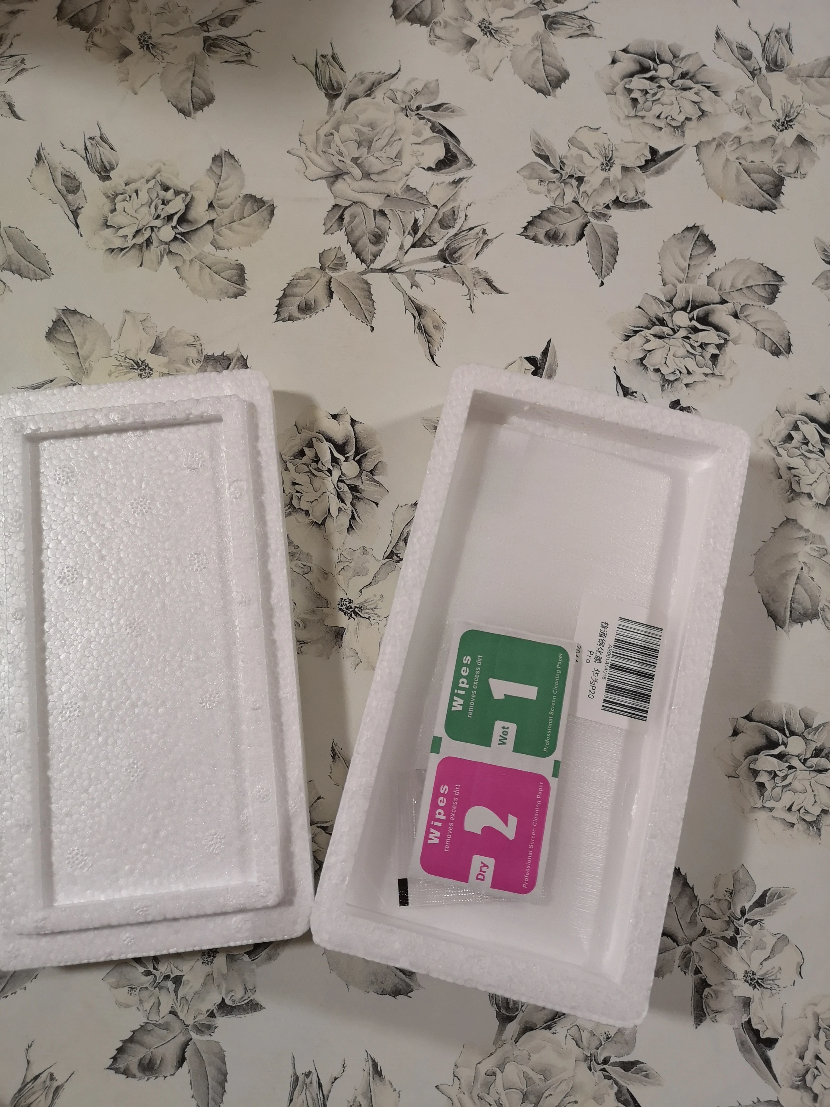 Посылка шла очень долго, почти заканчивался срок доставки ( 2 месяца точно, может даже больше). Стекло хорошо упаковано, в комплекте 2 салфетки (влажная и сухая), кисточка и масло для чего-то, не стала его использовать. Стекло идеально подошло на телефон.
