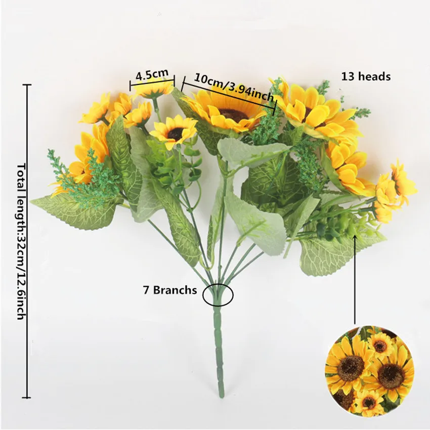Высокое качество, Реалистичный искусственный подсолнух, Шелковый цветок, семейный сад, балкон, спальня, офис, вечеринка, цветок, украшение на стену