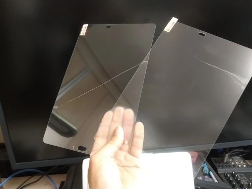 Обратите внимание: 1. Поскольку это стеклянный продукт, пожалуйста, обратите внимание, что края стекла являются наиболее чувствительными. 2. При удалении для повторного использования адгезивные свойства могут смываться до такой степени, что защита экрана не будет прилипать к прибору. Не рекомендуется использовать защитную пленку, как только она будет применяться. 3. Использование чрезмерной силы, которые устанавливают или удаляют протектор экрана, может повредить продукт.