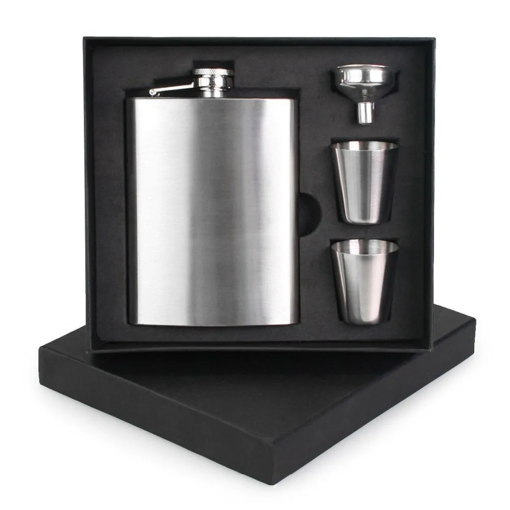 8 унций 188 нержавеющая сталь водка Бутылка для виски фляжка в подарочной коробке набор спиртовой воронки для ликера фляга с новыми черными чашками