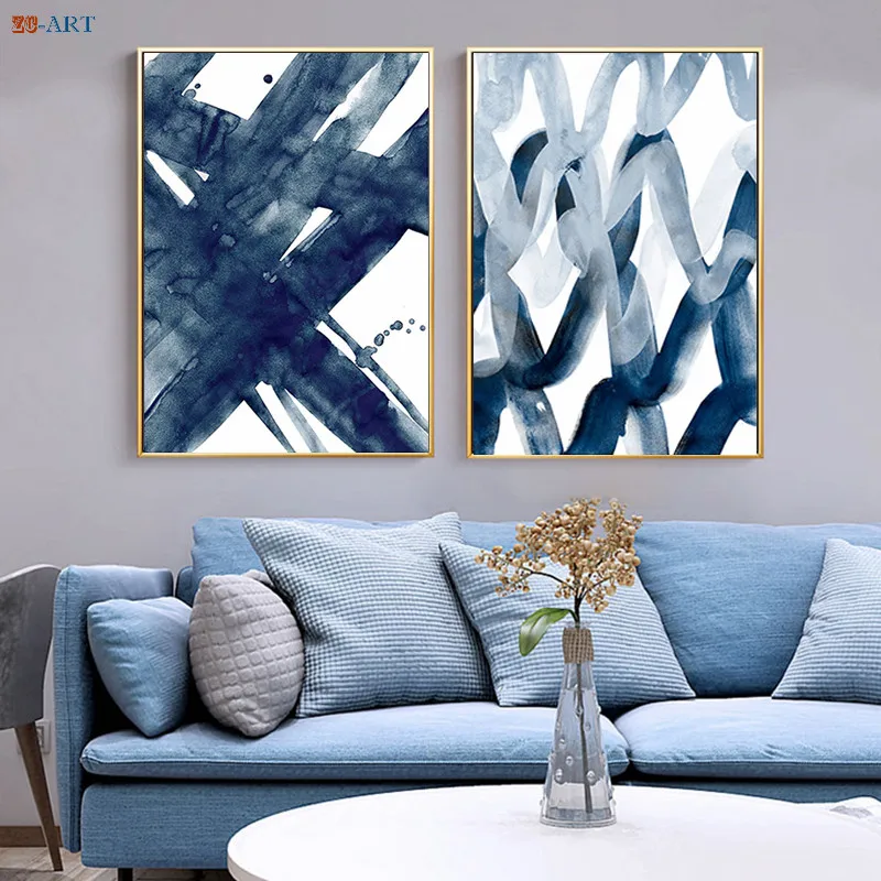 Минималистский Абстрактная живопись акварельная картина Темно-синие настенный художественный холст картина, печатный плакат Настенные картины для Гостиная домашний декор