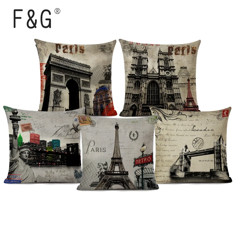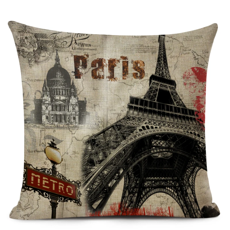 С оригинальными рисунками "Парижская башня Декоративная Наволочка н...