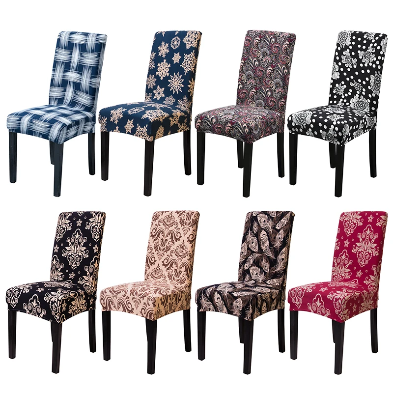 Чехлы на стулья с принтом, растягивающиеся Чехлы для обеденного сту...
