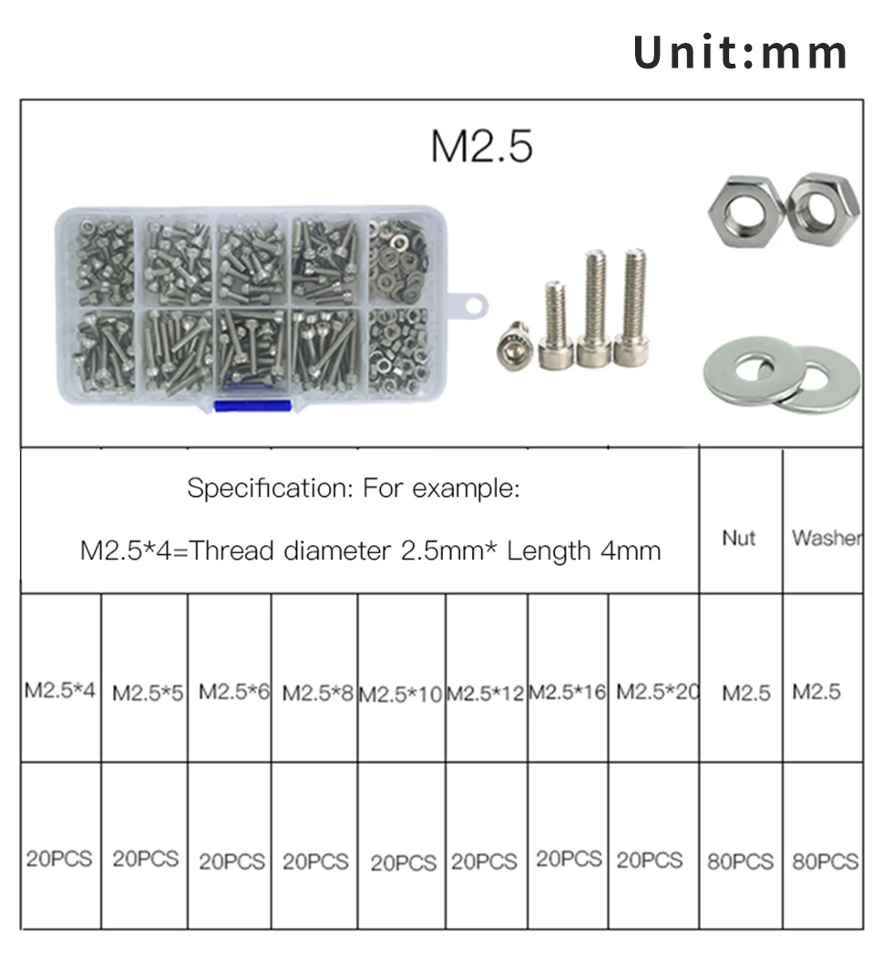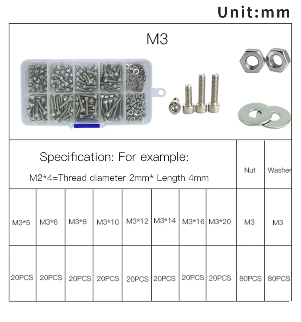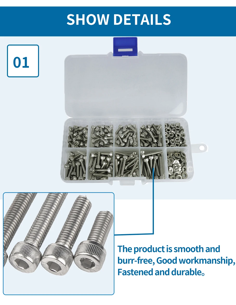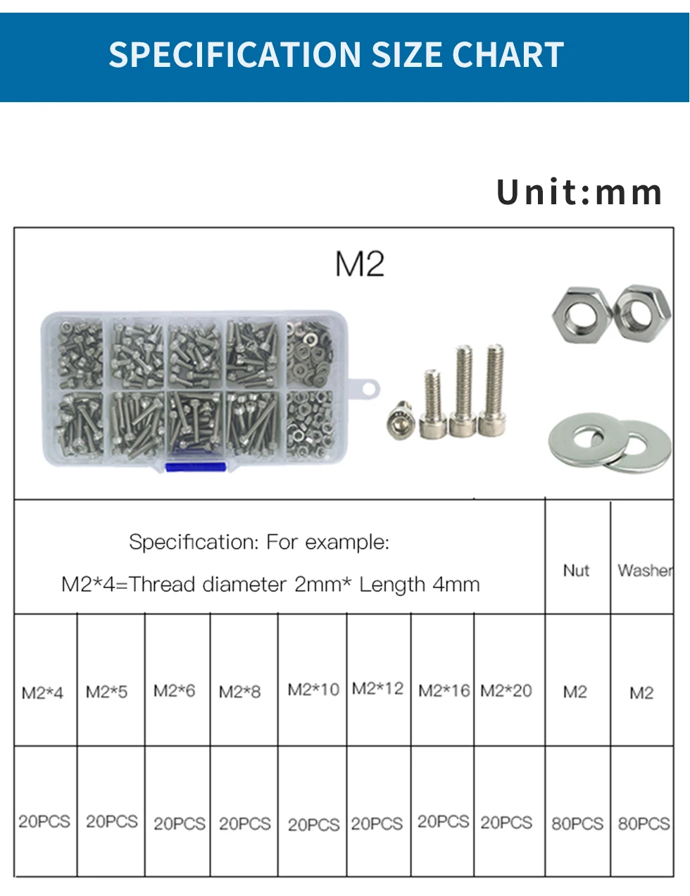 320 шт.компл M2 M2.5 M3 304 Нержавеющая Установочный винт полукруглой головкой Кепки винты велосипедные болты с шестигранной головкой, стандартам болтов и гаек комплект Ассортимент Комплект