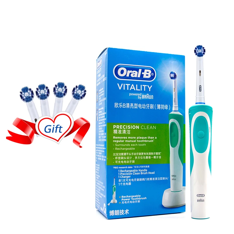Зубная щетка Oral B 2D электрическая, вращающаяся Водонепроницаемая перезаряжаемая, с 4 сменными щеточками в подарок