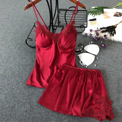Пикантная атласная пижама Daeyard для сна и отдыха, женская летняя Пижама, кружевной топ и шорты, пижамный комплект из 2 предметов, ночная рубашка, домашняя одежда