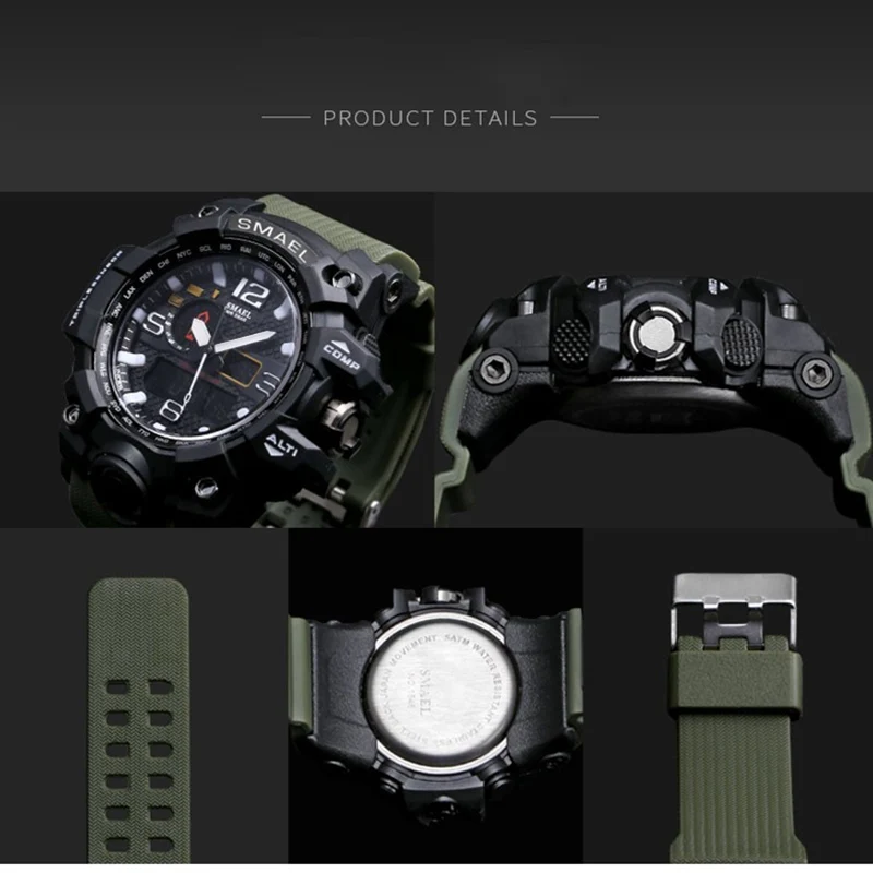 Мужские спортивные часы SMAEL, кварцевые камуфляжные часы цвета хак...