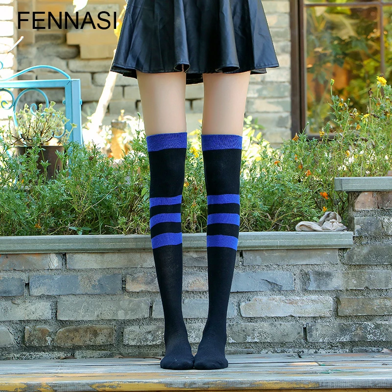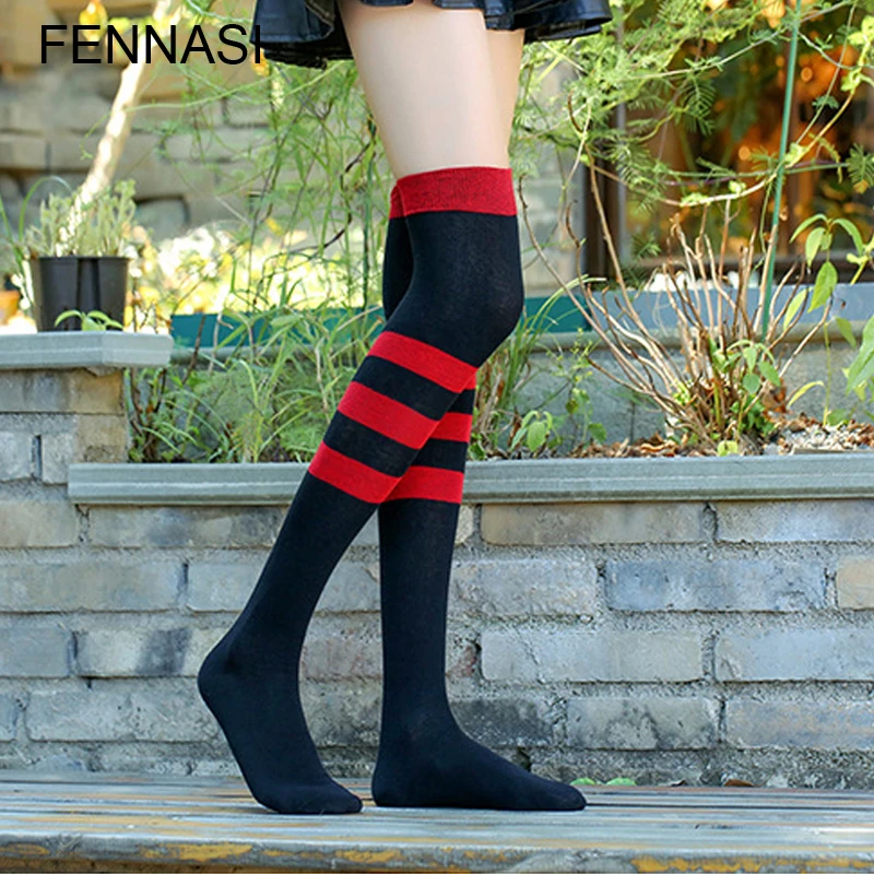 FENNASI, женские толстые полосатые сексуальные чулки, милые длинные носки, школьные кавайные гольфы, женские хлопковые гольфы