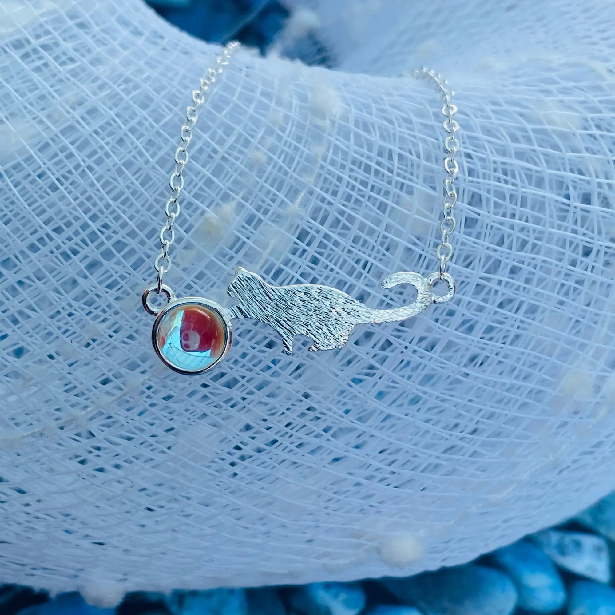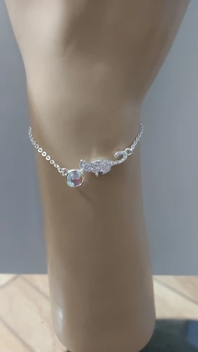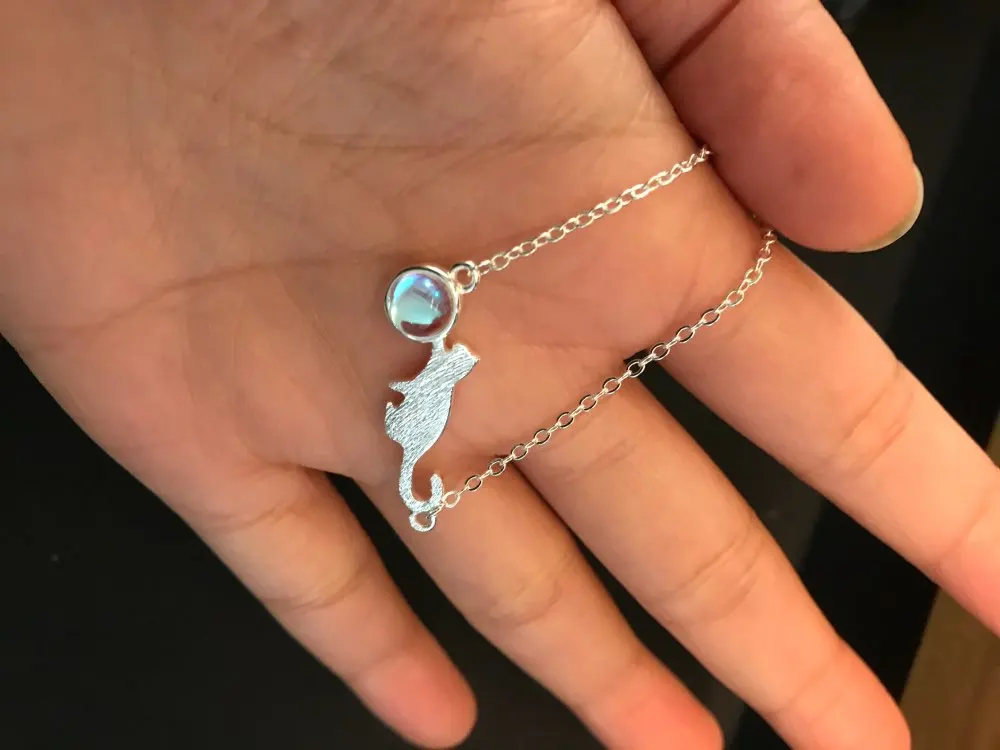 Женский модный браслет с изображением лунного камня, 925 пробы, Серебряное ювелирное изделие, кристалл, милый кот, темперамент, SB119