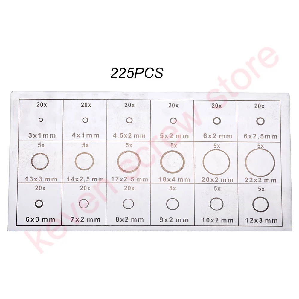 225 шт. резиновое уплотнительное кольцо, уплотнительные кольца, водонепроницаемые в ассортименте, разные размеры с шайбой, набор в пластиковой коробке