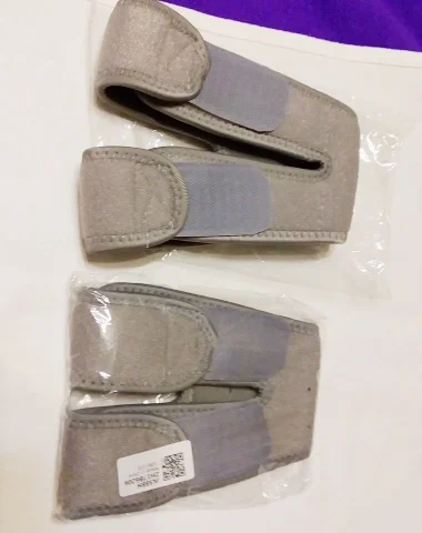 Только одна штука поставляется в качестве стандарта, поэтому я заказал 2. Никаких проблем с качеством. Выглядит так, как ожидалось. Хороший дизайн, чтобы оставаться на месте и стабилизировать колено. Мне нравится губка для нанесения давления на переднюю часть верхней и нижней части колена. Доставка довольно медленная