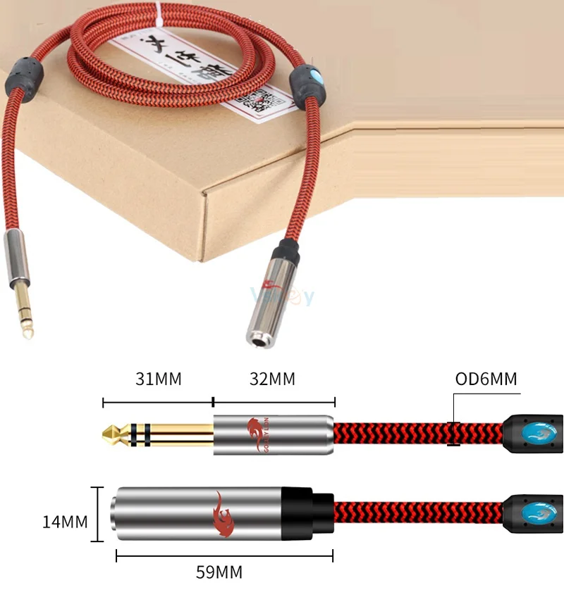Cable Type1/4'' male to 1/4 in Male to Female Audio Cord