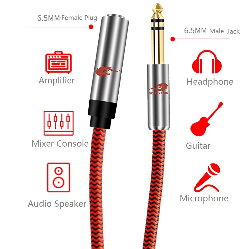 Стерео Удлинительный кабель 1/4 TRS предназначен для расширения доступа к проводным наушникам со стереоразъемом для подключения гитары, наушники со стандартным 6,35 мм подключается к аудиоустройствам с 6,35 мм стерео джек, позволяет подключить наушники к аудиоустройствам, таким как усилители или av-ресиверы с 6,35 мм гнездо