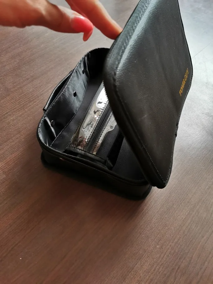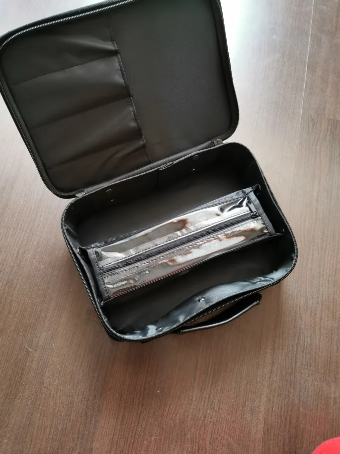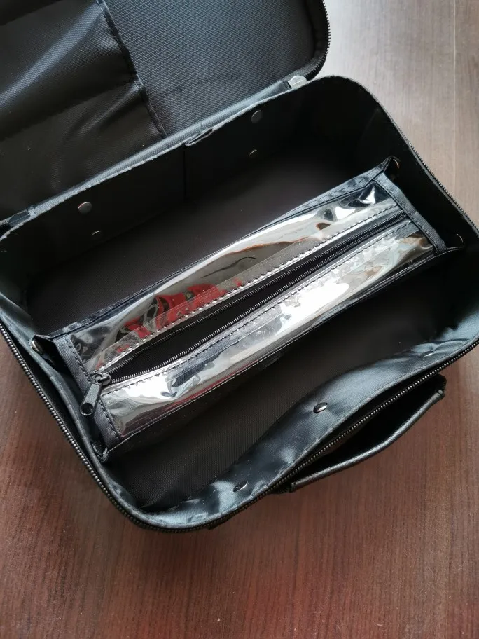 Очень удобный кейс, всё необходимое поместилось для стрижки, кроме фена и больших расчесок. Но я довольна, мне для стрижек очень удобно !!!!