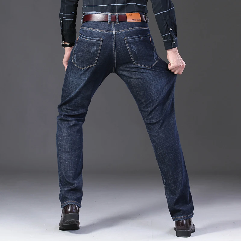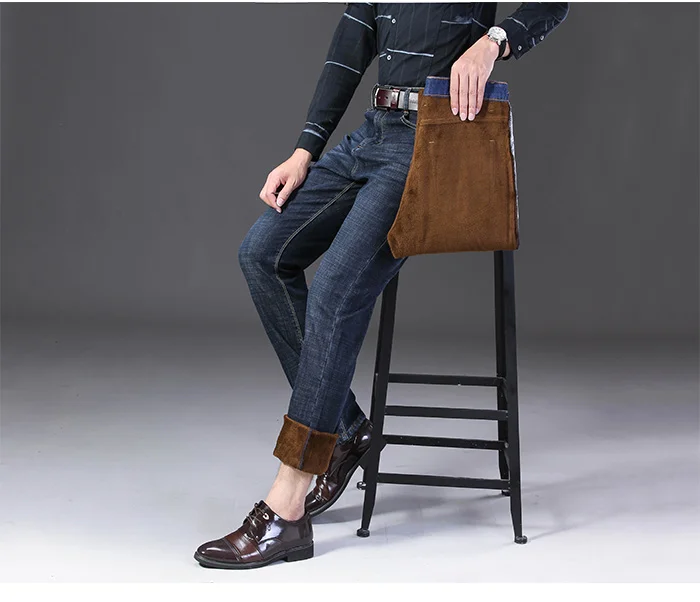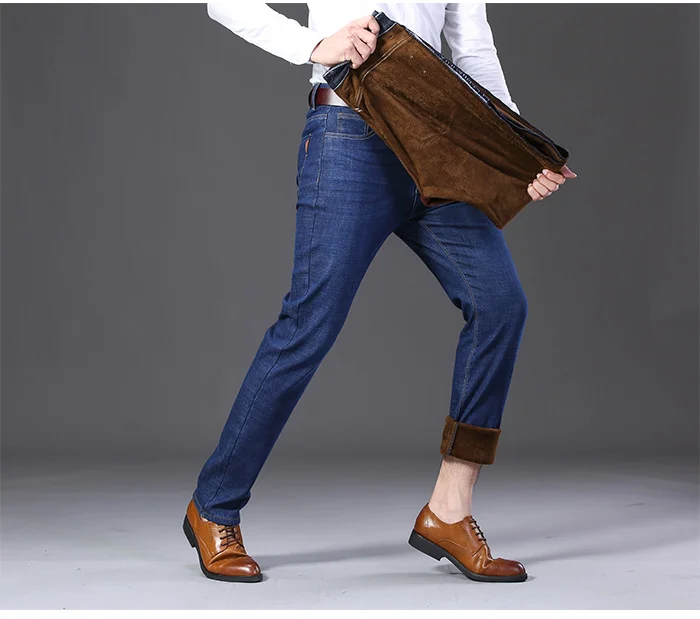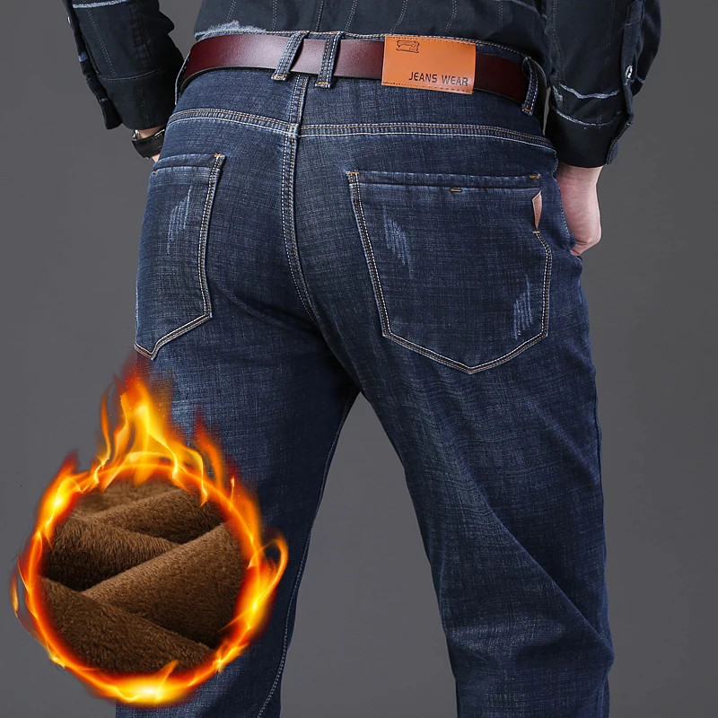 Зимние теплые фланелевые Стрейчевые джинсы, мужские зимние качественные флисовые штаны от известного бренда, мужские прямые флокированные брюки, мужские джинсы