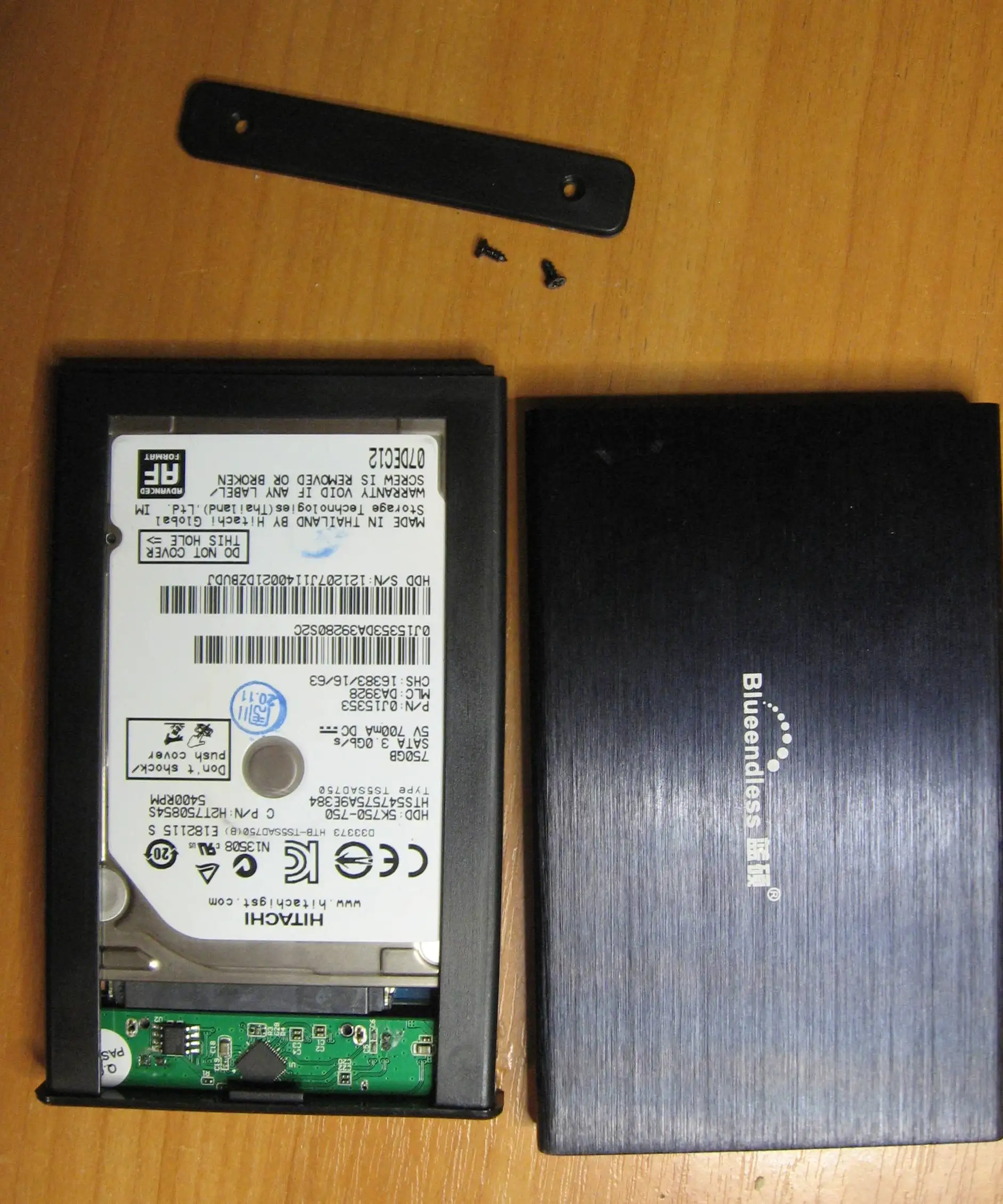 Внутри новой коробочки оказался бывший в употреблении HDD 2012 года, с потёртостями на корпусе. Зато тест диска показал время работы нуль часов. Советую всем отдельно покупать карман, винчестер и сэкономить 6 баксов, а не покупать кота в мешке у жуликов.