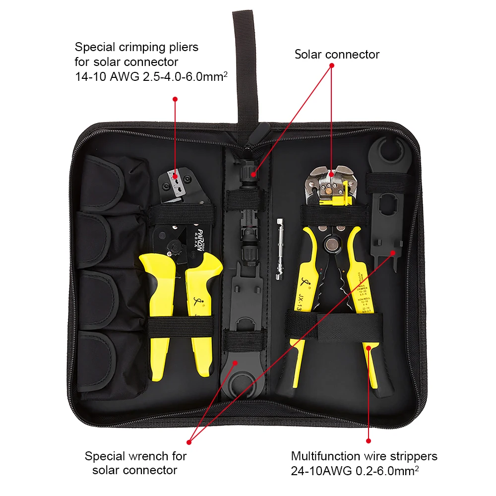 Щипцы для проводов с набором инструментов для зачистки проводов отличаются удобством, эффективностью и безвредностью для сердечников кабеля солнечной панели. Он прост в использовании, просто удерживайте ручку и управляйте ею один раз, чтобы успешно нажать плотно прилегающие провода и клеммные блоки. Профессиональный инструмент для проектов солнечной энергии.Щипцы для проводов с набором инструментов для зачистки проводов отличаются удобством, эффективностью и безвредностью для сердечников кабеля солнечной панели. Он прост в использовании, просто удерживайте ручку и управляйте ею один раз, чтобы успешно нажать плотно прилегающие провода и клеммные блоки. Профессиональный инструмент для проектов солнечной энергии.