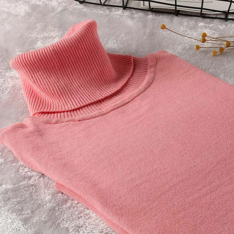 Женский свитер с высоким воротом, вязаный базовый свитер с длинным рукавом, 2019
