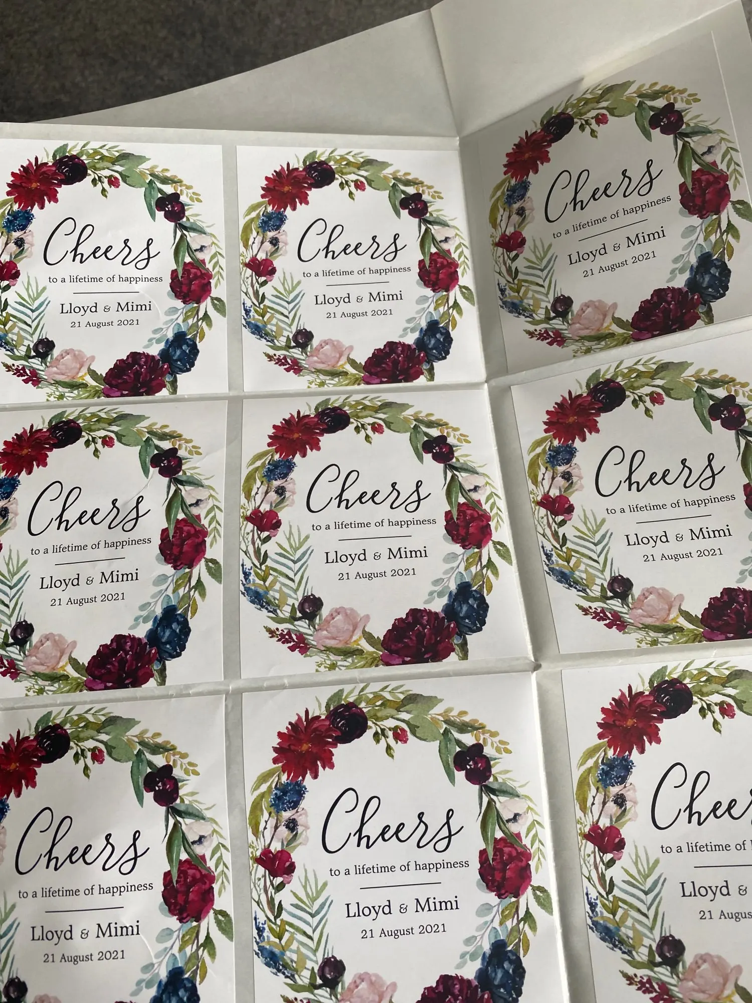 20 штук, индивидуальные наклейки на бутылки вина, на день рождения, юбилей, свадьбу, клейкие, не водостойкие