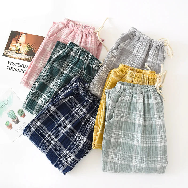 Пижамные штаны Fdfklak, хлопковые, в клетку, для весны и лета, Q1311