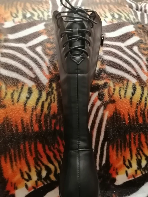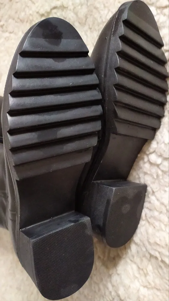 Сапоги визуально понравились. Сшиты хорошо, без брака. Прошлась по улице, был и снег, и лужи, и лед. Два раза сверкала пятками. Шла очень аккуратно и внимательно, но чуть не упала. Ледостопы покупать буду обязательно! Подобрать мне сапоги всегда сложно, ноги не худенькие. Один сапог застегнула легче, но с затруднениям, вторая нога на 1 см оказалась крупнее по всем меркам, одевала....застегнула с пре!великим трудом, тонкий мех улегся чуть, походила по улице, стало полегче. Сообщаю свои параметры на фото, может кому поможет. Больше этих не надените! Шнуровка у меня до конца. Там есть еще пара сантиметров свободных у самого верха!, начинается с половины шнуровки, но! это у кого строение ноги, когда колени шире икры. Кожзам ощущается, шерсть тонкая, но теплая, так и цена не 9 тыс, как я купила совсем похожие: кожа и натуральный мех, вот и не влезла к зиме. Сапоги хорошие, верх кожзам, низ натураль, скользкие, а это решаемо. Покупкой довольна.