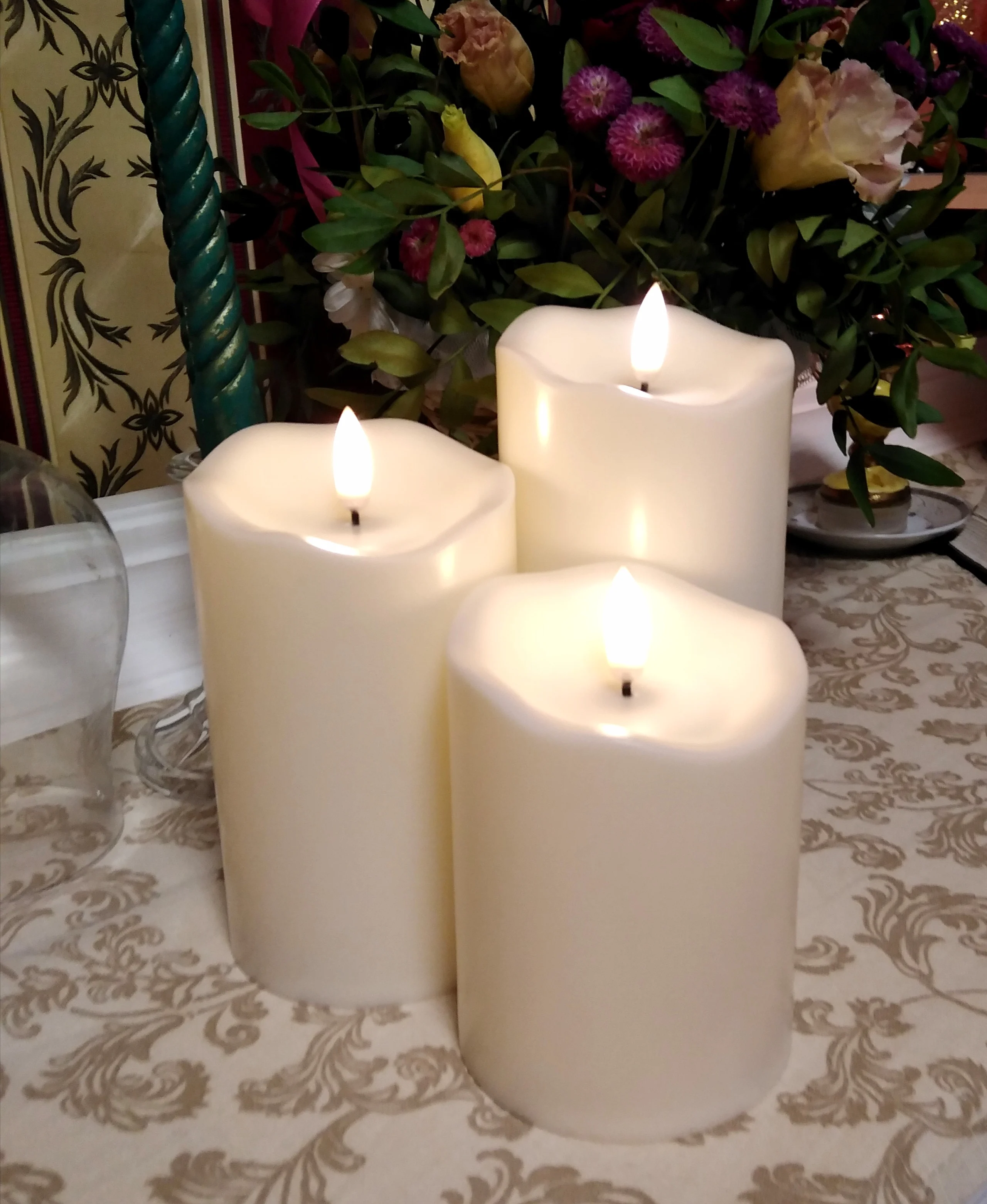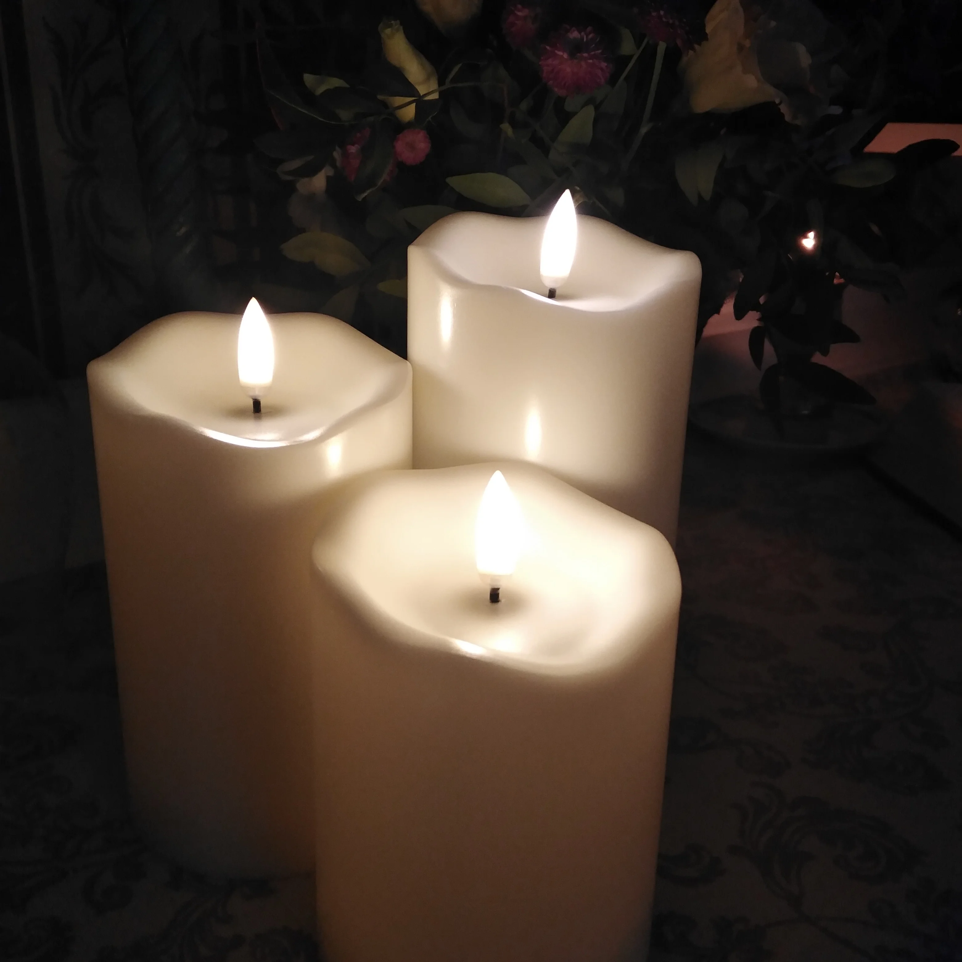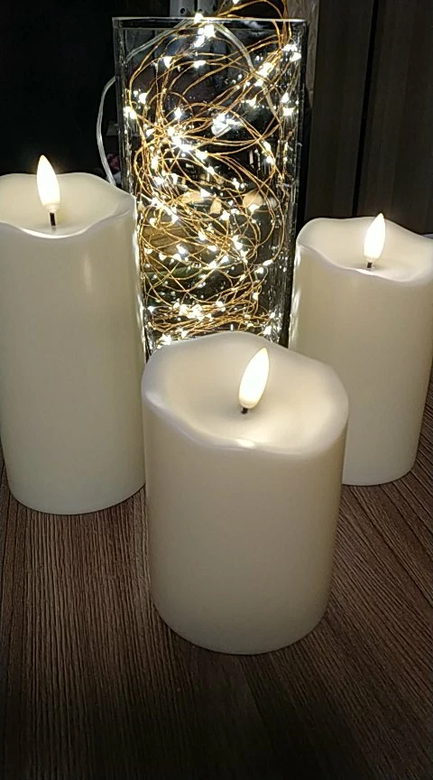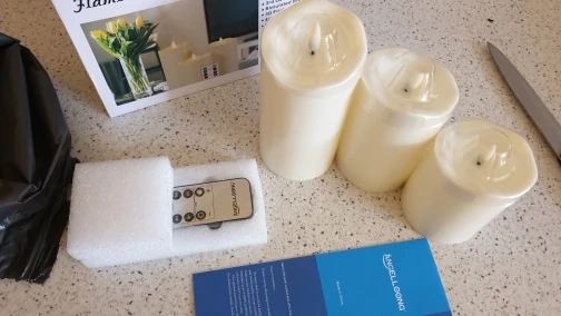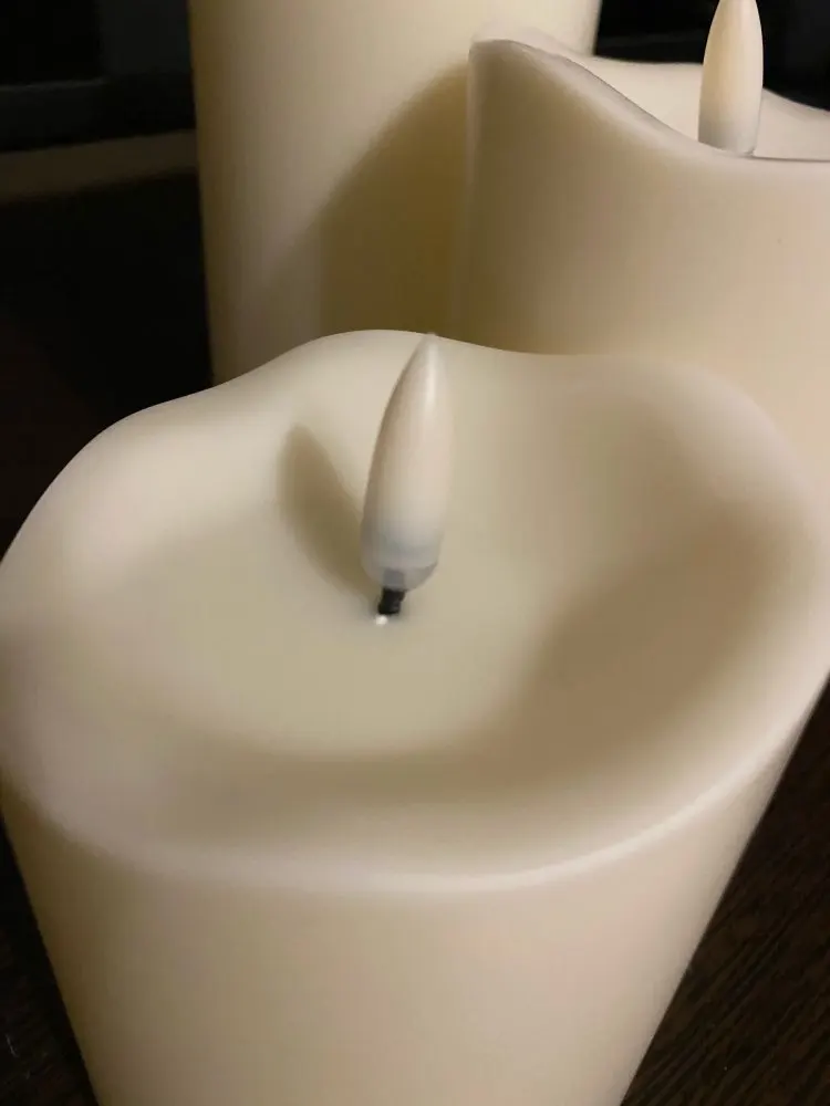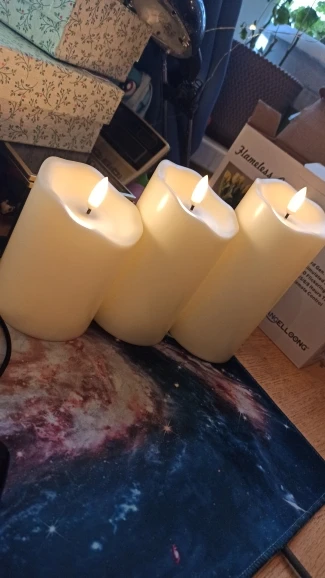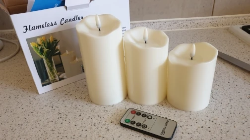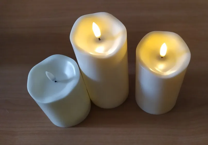 В кратце: свечи просто супер! Теперь немного подробнее. Свечи не парафиновые, как написано в описании, а пластиковые, но не смотря на это в дневном освещении выглядят нормально. Жаль только что форма верха у всех одинаковая. Толстенькие, но очень легкие. Работают от 2х пальчиковых батареек каждая (нет в комплекте). Есть пульт (батарейка в комплекте). Пультом можно включить/выключить, регулировать яркость, поставить таймер выключения на 4, 5, 6 или 8 часов. Фитиль не колышется, он статичный. И, наконец, самое главное: в горящем состоянии выглядят очень круто и реалистично! Такое спокойное пламя горящей свечи, мерцающее. Правда, если свечи стоят вместе, то когда их включаешь, они мерцают все одинаково, лучше поочередно включать для лучшего эффекта. Однозначно рекомендую. Есть доставка из России, она просто моментальная, 3 дня, до двери.
