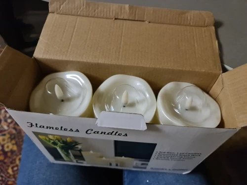 Продавец долго не отправлял товар, но доставка была быстрая. Товар упакован в картонную коробку, батарейки только в пульте, в свечах батареек нет. Выглядят свечки очень хорошо. Огонек мерцает как настоящий, но сами свечки пластиковые и это негативно сказывается на реалистичности свечей. Очень удобно, что вкл и выкл на разных кнопках. Подружил свечи с Алисой через пульт broadlink. Товаром доволен как слон, жене тоже очень нравится! Если бы не долгая отправка, были бы только положительные эмоции.
