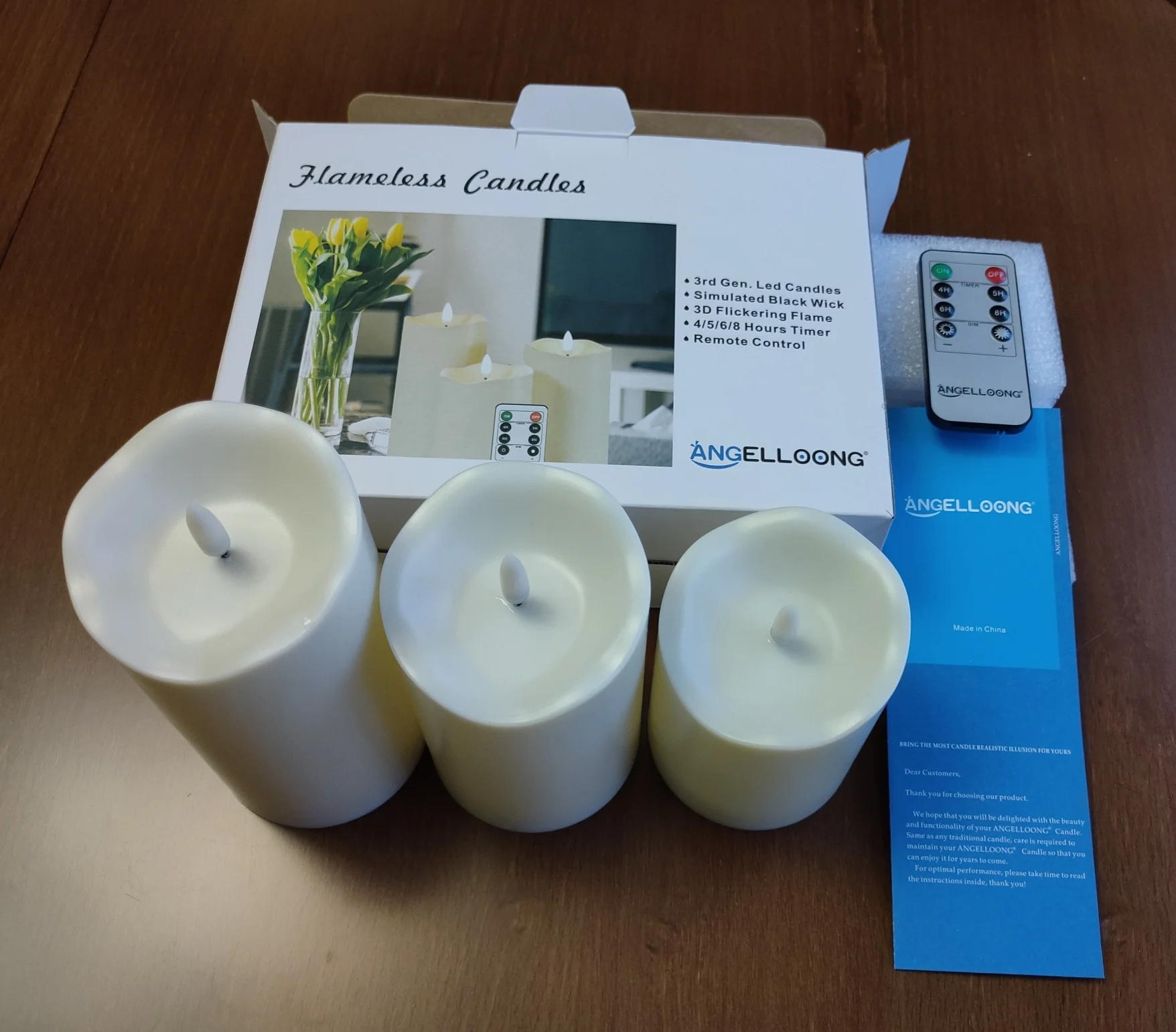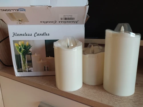 Идентично описанию. Заказ 11 ноября, прибыл 23 ноября, очень быстро. Красивые свечи, 3 размера. Пламя не движется, оно блестит. Различные силы освещения с пультом дистанционного управления. Для каждой свечи требуется 2 батарейки AA LR6. Идеально упаковано, прибыло в приятную упаковку для подарка. Спасибо продавцу, я рекомендую.