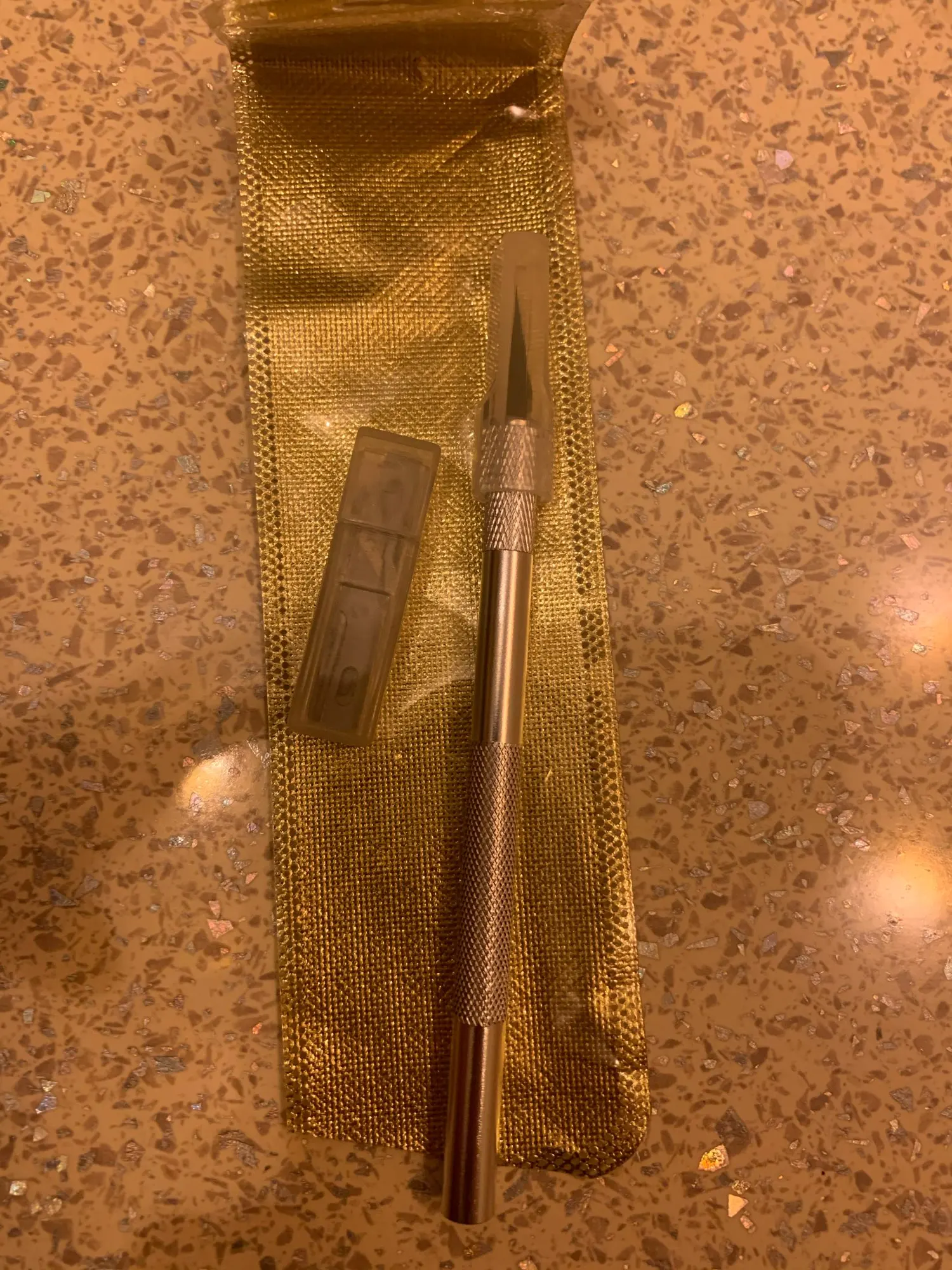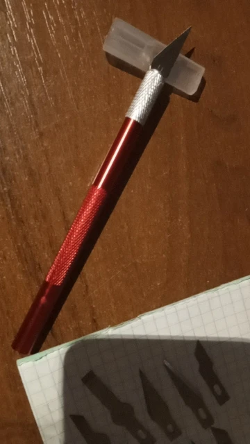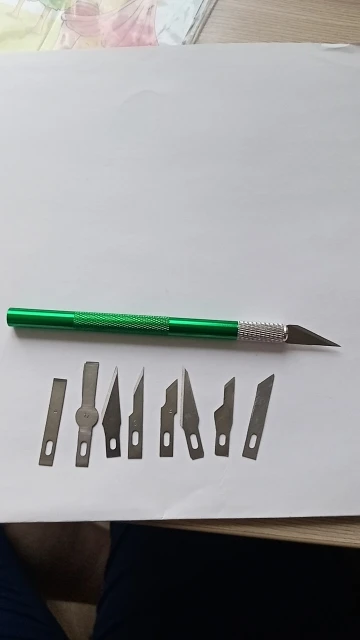 Прекрасный скальпель из алюминия, в комплекте: сам скальпель в пластиковом чехле и пластиковый футляр с доп.лезвиями в смазке. Качество ножей хорошее. Товар соответствует описанию, замечаний нет.