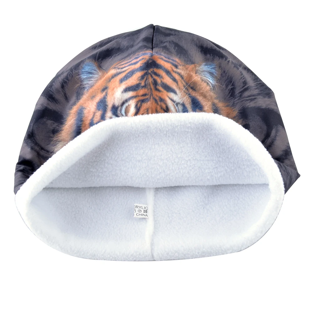 Шапка-бини с принтом тигра, Шапка-бини, Зимняя Теплая Бархатная шап...