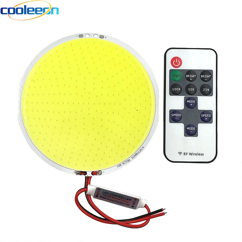 12 В постоянного тока, диммируемая круглая Светодиодная лампа COB, панель, 12 В, 50 Вт, светодиодная лампа с диммером, синий, теплый, холодный, белый цвет, алюминий, плата COB, 108 мм