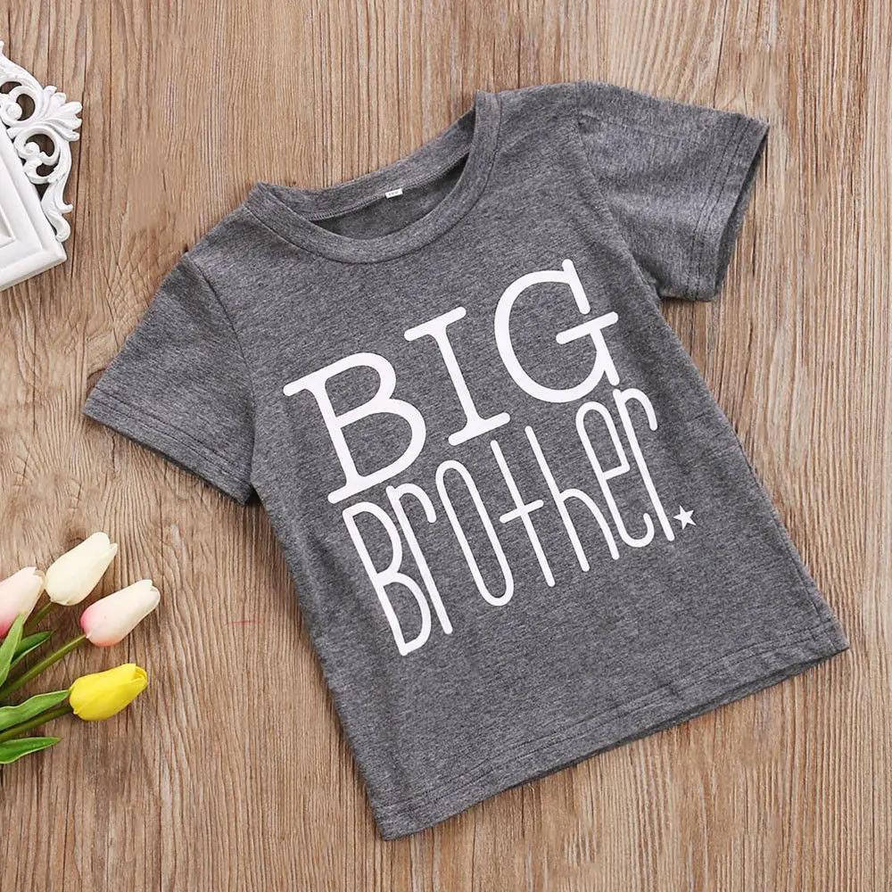 Детская серая футболка с принтом Большой Брат, летняя одежда для мальчиков, хлопковые топы с короткими рукавами и буквенным принтом, детские футболки