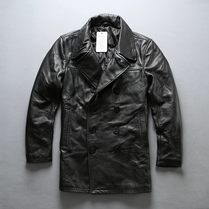 Куртка AVIREXFLY мужская из натуральной воловьей кожи, Повседневная двубортная верхняя одежда из воловьей кожи, черная, зимняя, 2018