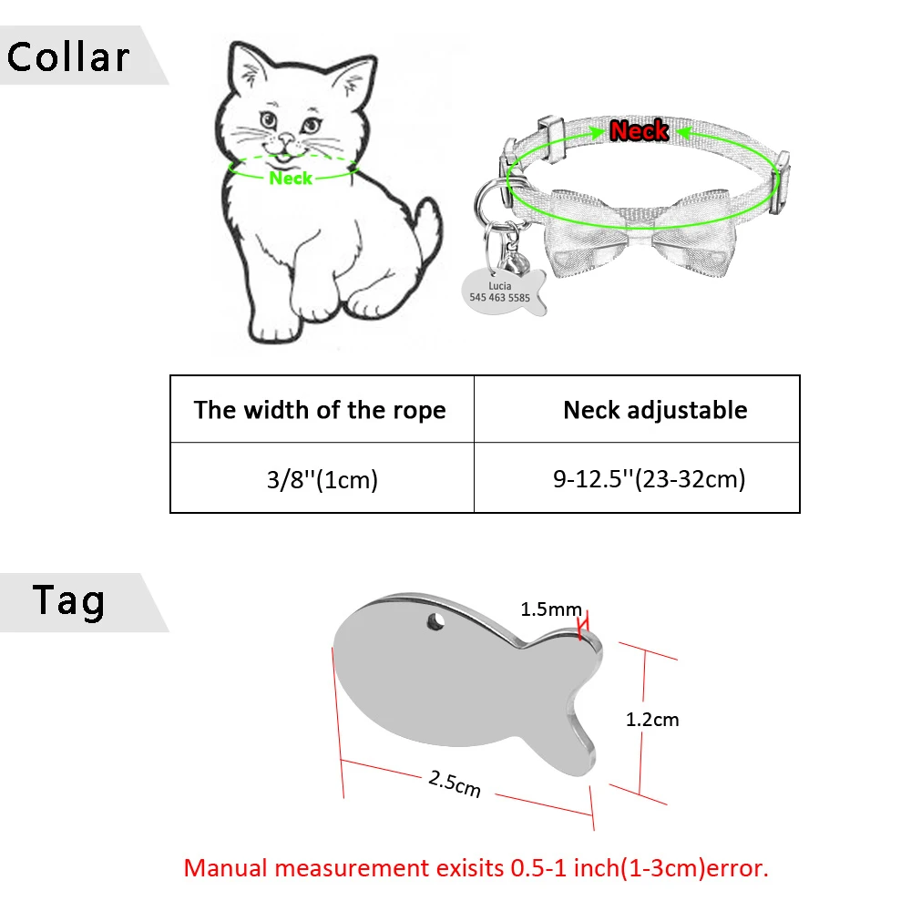 Персонализированный ошейник для собак и кошек, быстросъемный нейлоновый ошейник для маленьких собак и кошек с гравировкой, бант с колокольчиком, идентификационная бирка для рыбы