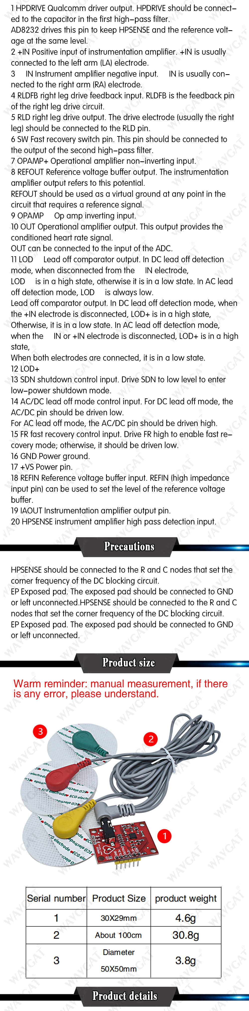 Модуль ЭКГ WAVGAT AD8232 измерение показателей ЭКГ, модуль датчика контроля сердечного ритма, комплект для Arduino UNO R3