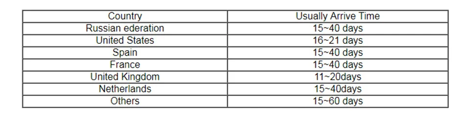 Мы используем EMS /AliExpress Стандартная доставка/Почта Китая авиапочтой/CPAM/Fedex в соответствии с вашим местоположением, и вы получите номер отслеживания в течение 1-5 дней после доставки.Мы делаем это в сотрудничестве с крупными поставщиками логистики, такими как Singapore Post, Correos, Posti Finland, SPSR, DHL и другими. Если вам нужно, пожалуйста, свяжитесь с нами, чтобы выбрать.