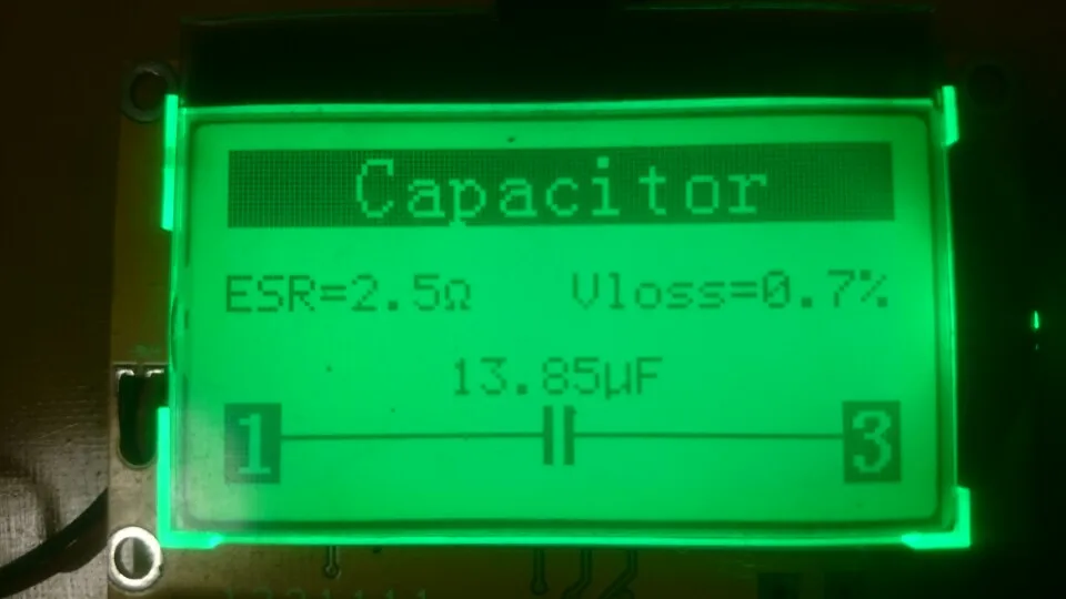 Ёмкость от 13,35 до 13,85 мкф. ESR от 1,4 до 2,0 ом. VLoss от 0,6 до 0,8% Немного занижена ёмкость, в остальном все нормально.
