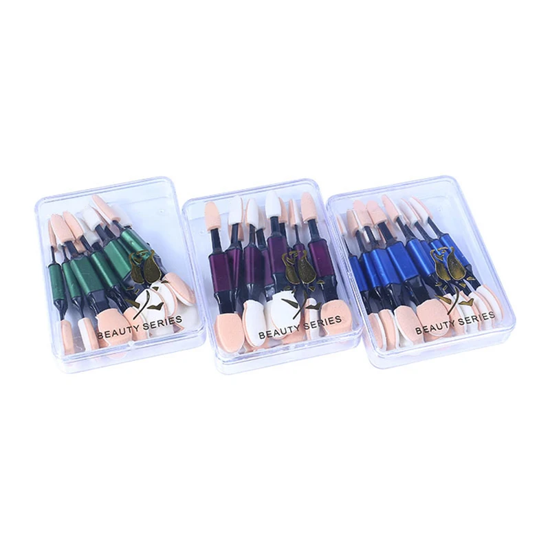10 шт./кор., профессиональная губка, карандаш для теней, аппликатор, косметические инструменты для макияжа, портативная двухсторонняя кисть для теней для век для женщин с коробкой