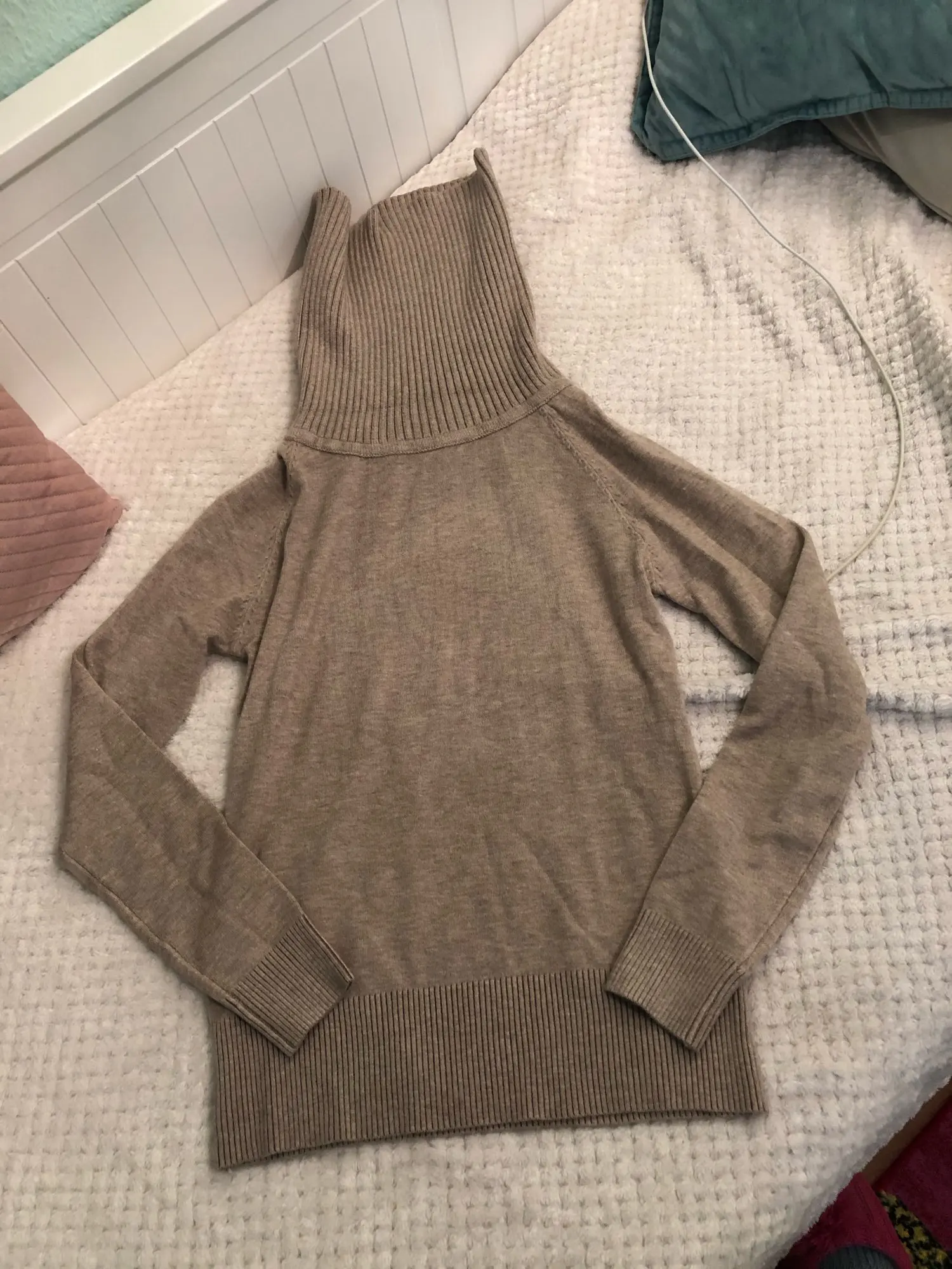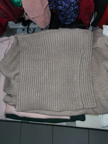 Свитер не плохой, тонкий, приятный к телу, но вот только воротник просто огромный, пришлось в два раза свернуть. Воротник в два раза тяжелее самого свитера. Какой-то он несуразный.