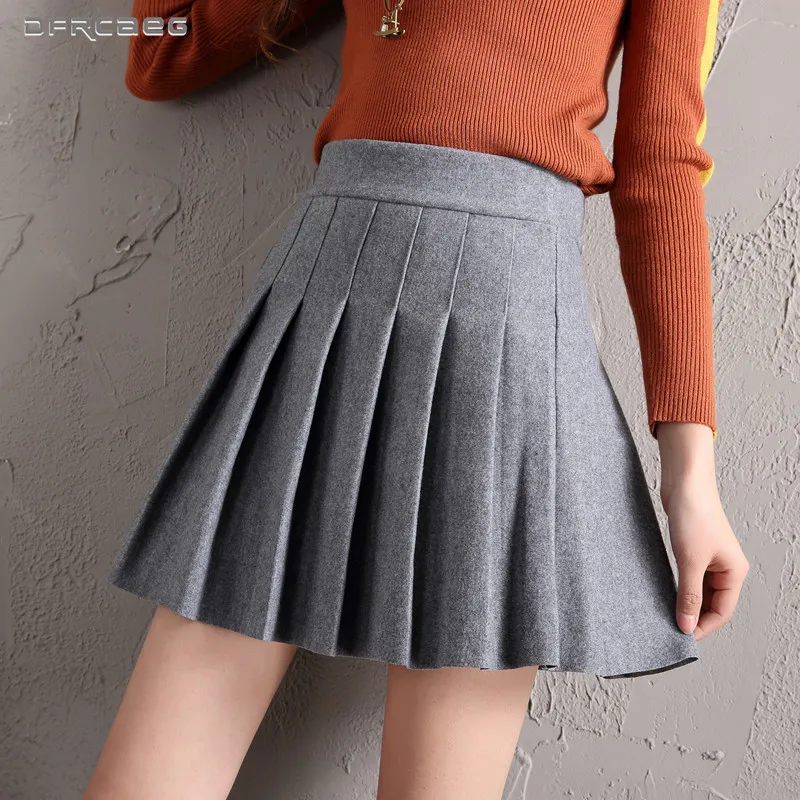 Шерстяная мини-юбка, винтажная, плиссированная, с высокой талией, черная, для женщин, зима 2019