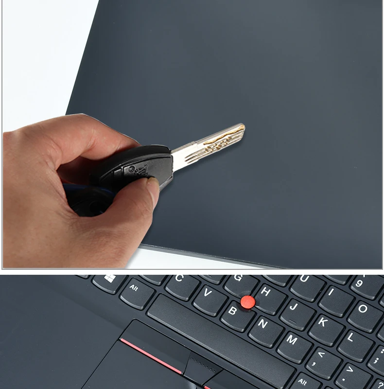 2. Когда вы готовы наклеить пленку на ноутбук, вы должны положить пальцы посередине, стараясь не прикасаться к краю пленки, чтобы край можно было крепко приклеить. Затем используйте сушилку для волос, чтобы нагревать ее во время прилипания. Если ваши пальцы будут держать на касании края, это уменьшит его вязкую силу.