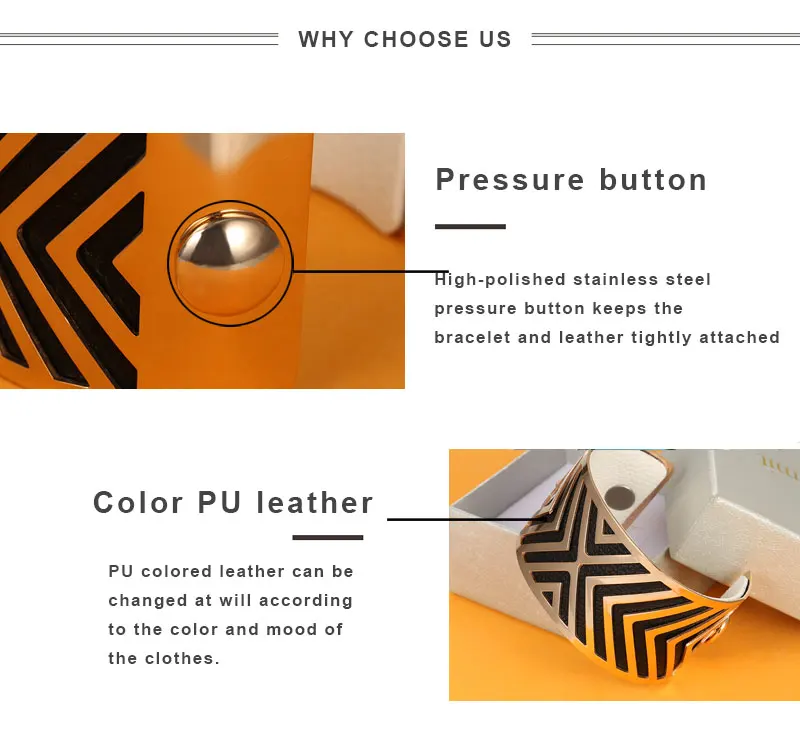 Женский Браслет-манжета из нержавеющей стали, со сменной кожей
