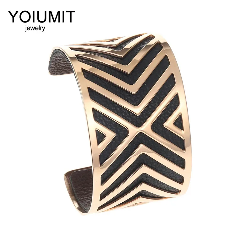 Браслеты-манжеты Cremo, кожаный ремень, браслеты из нержавеющей стали цвета розового золота, ювелирные изделия Yoiumit, сменные кожаные браслеты для женщин