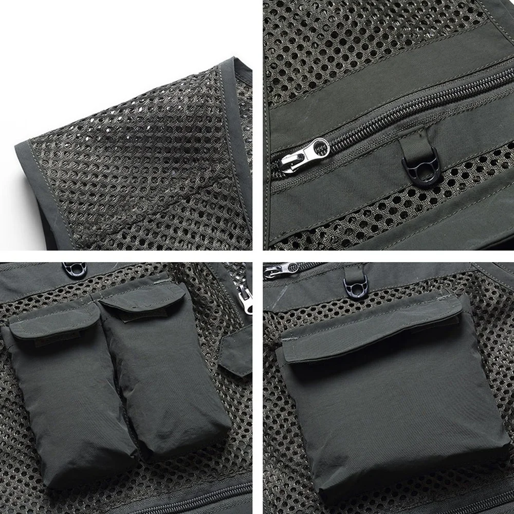 Жилет мужской мешковатый с несколькими карманами, Повседневная тонкая сетчатая одежда для охоты, рабочая куртка без рукавов со множеством карманов, лето 2021